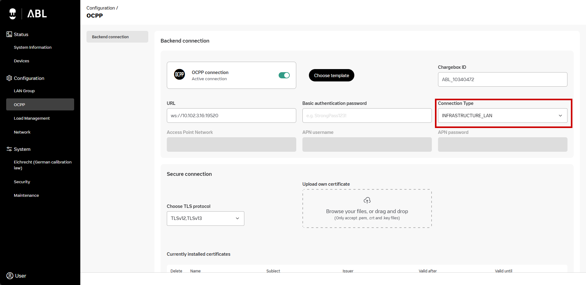 - Enbas: Wähle den ABL eM4 bei Hersteller & Typ