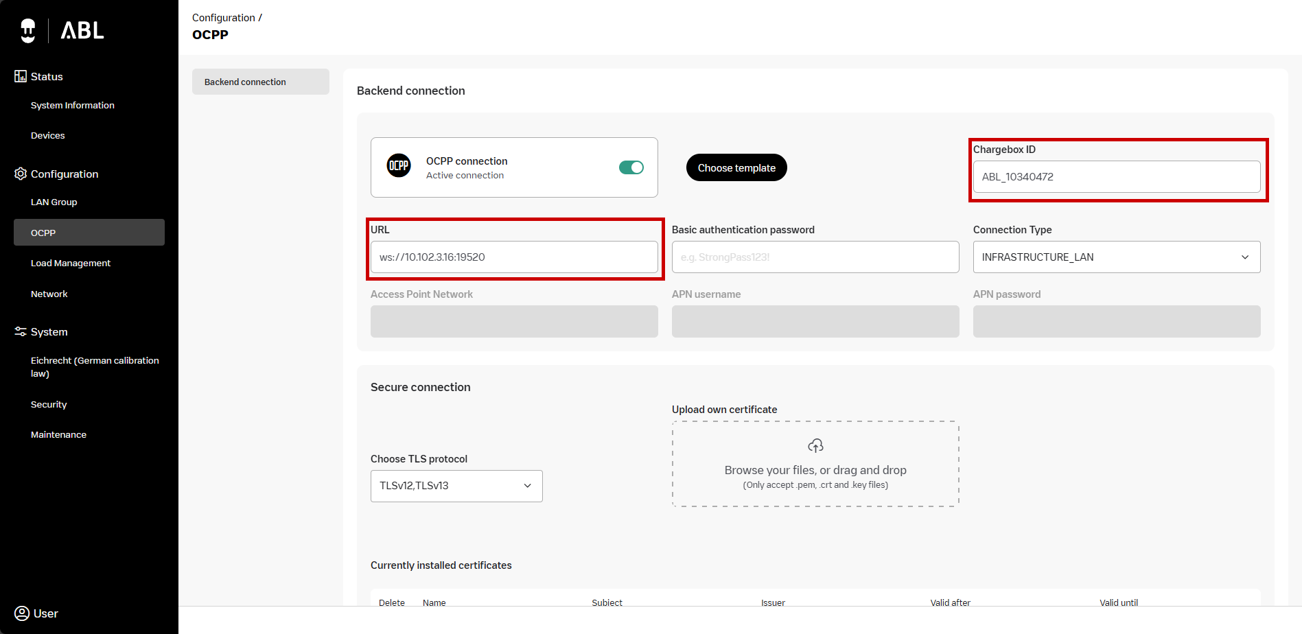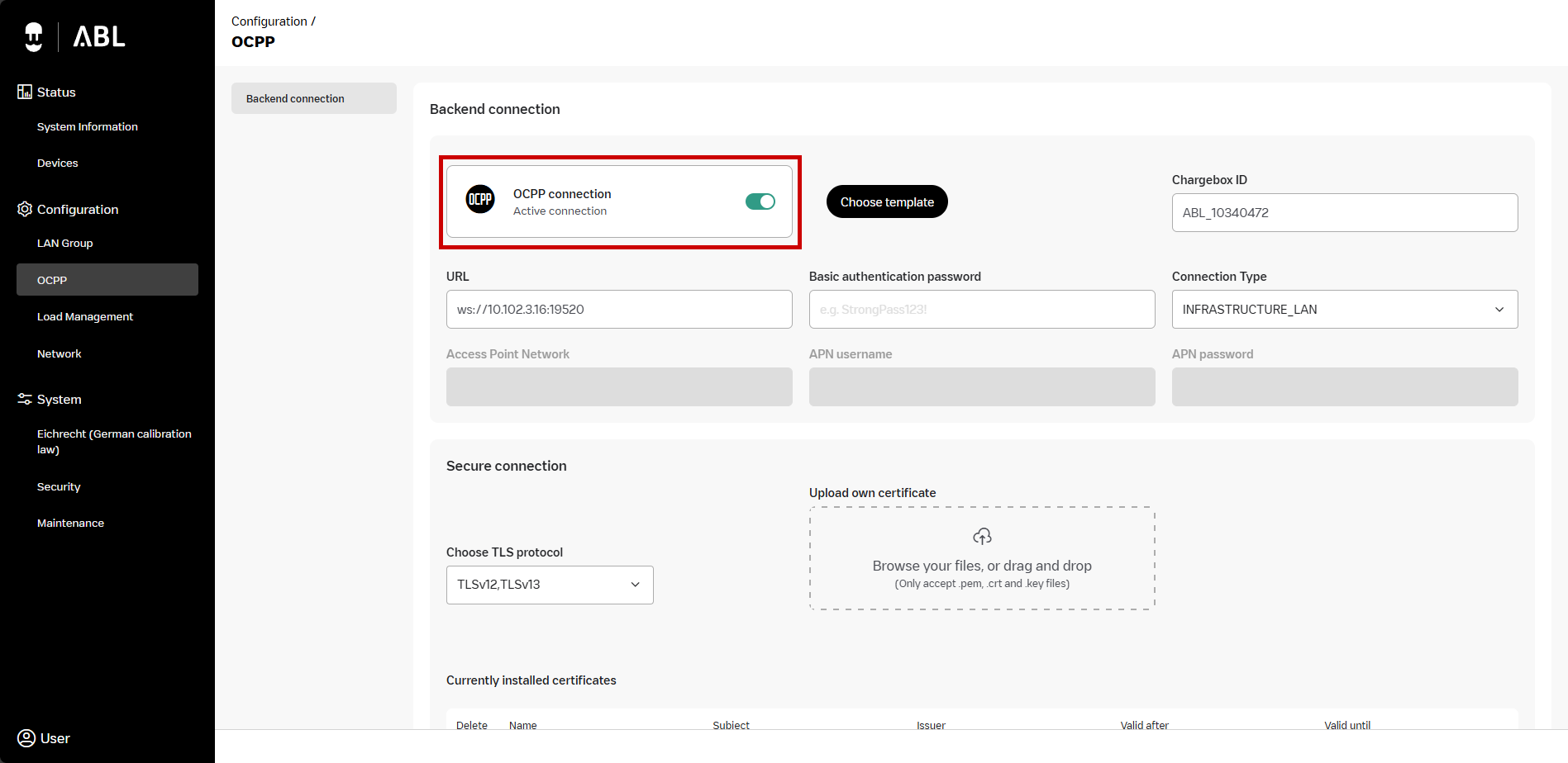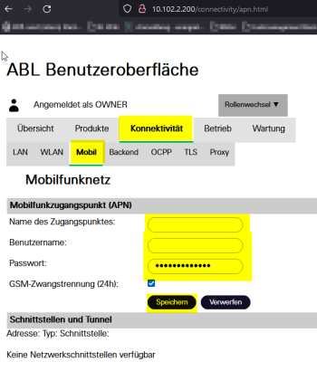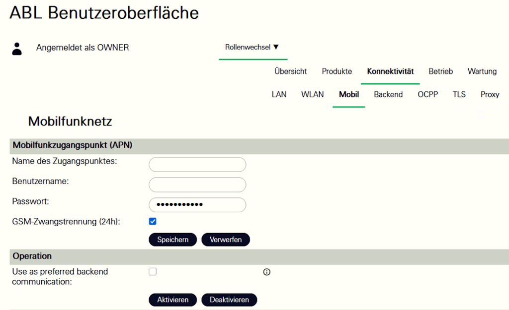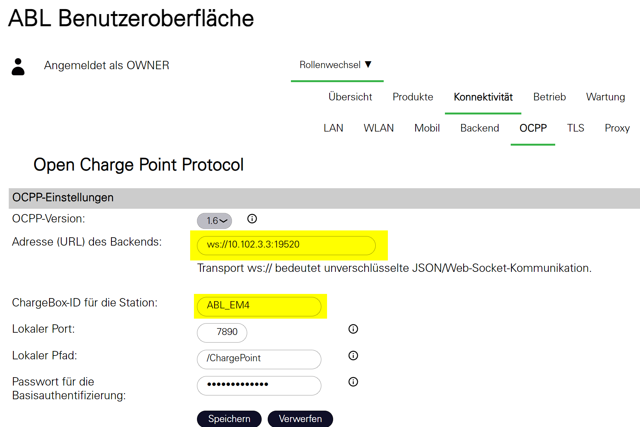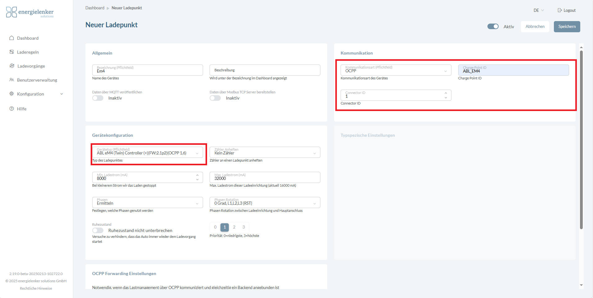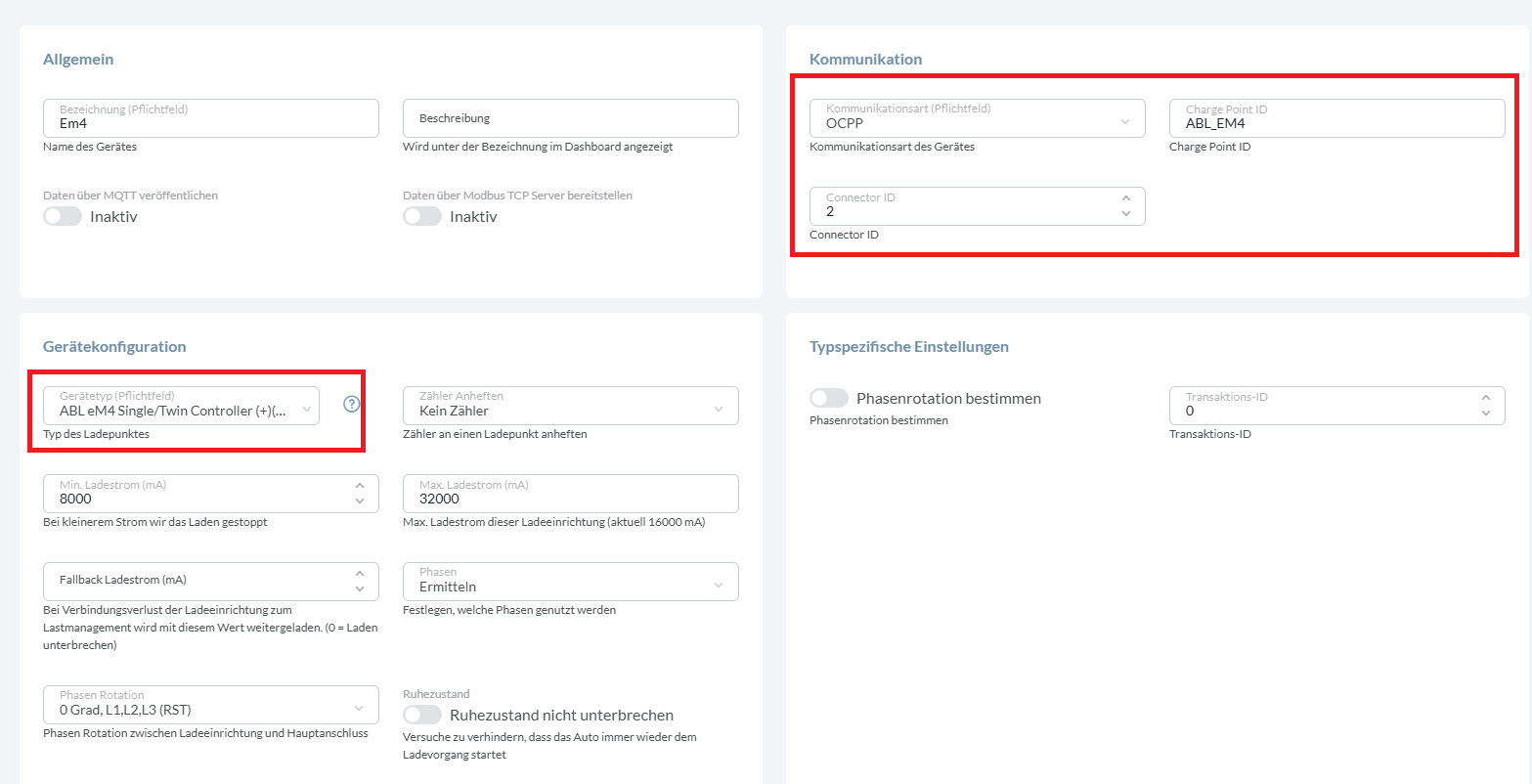 - Lobas: Wähle ABL eM4 bei Gerätetyp