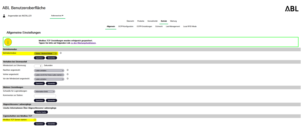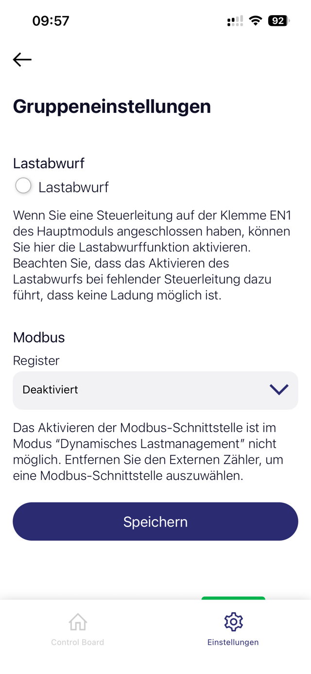 Der eingestellte Wert im Lastmanagement muss immer größer gleich dem in der Ladestation eingestellten min. Ladestrom sein, da es sonst zu Fehlern in der Ladestation kommen kann.