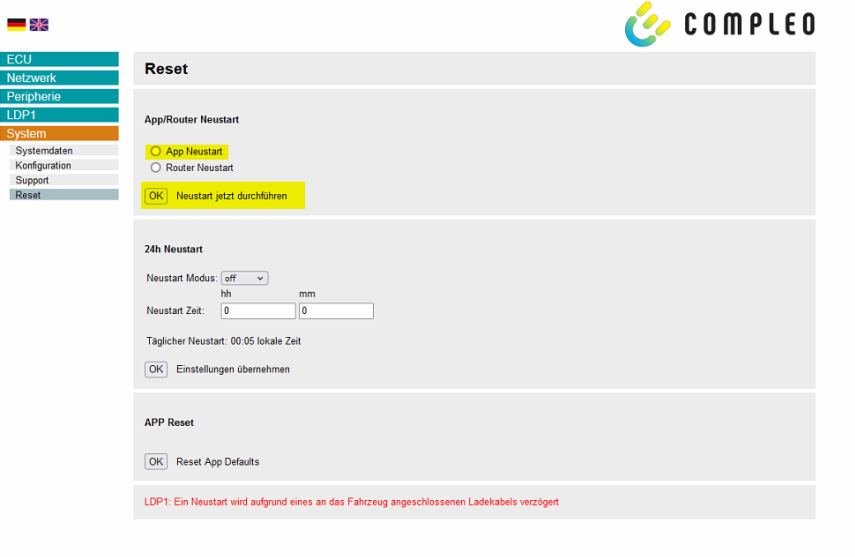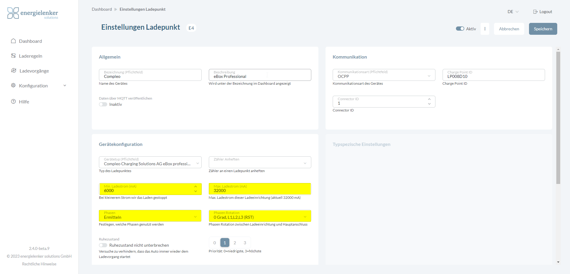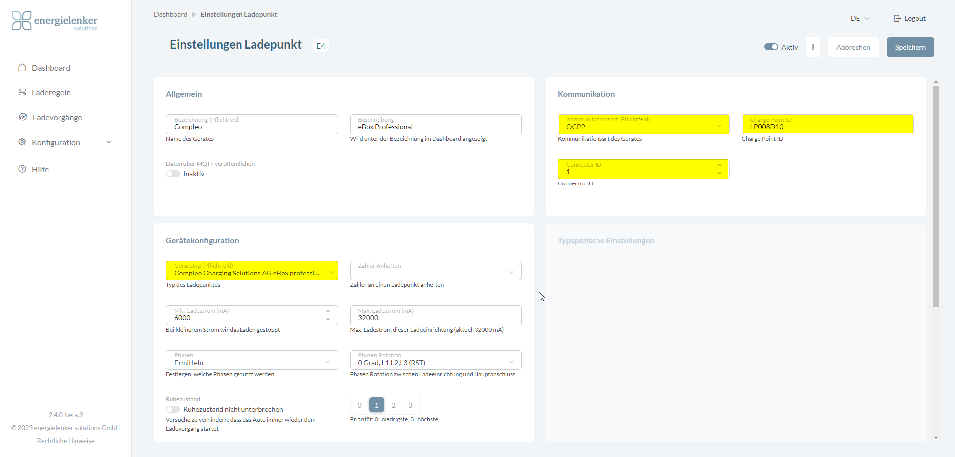 - Lobas: Wähle Compleo eBox Professional bei Gerätetyp