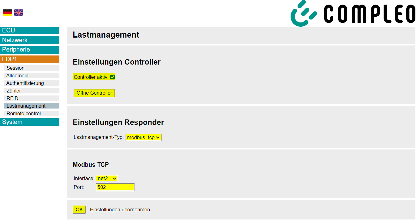 - Im Web-UI unter LDP1 → Lastmanagement navigieren.