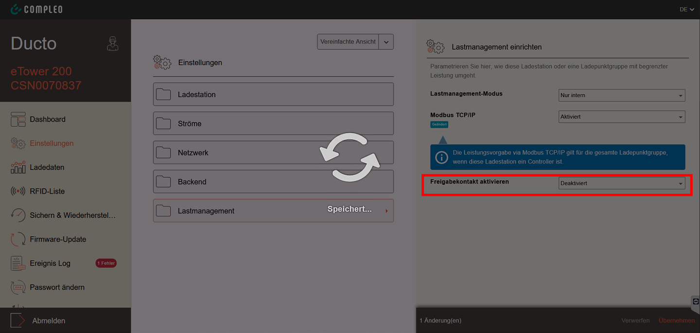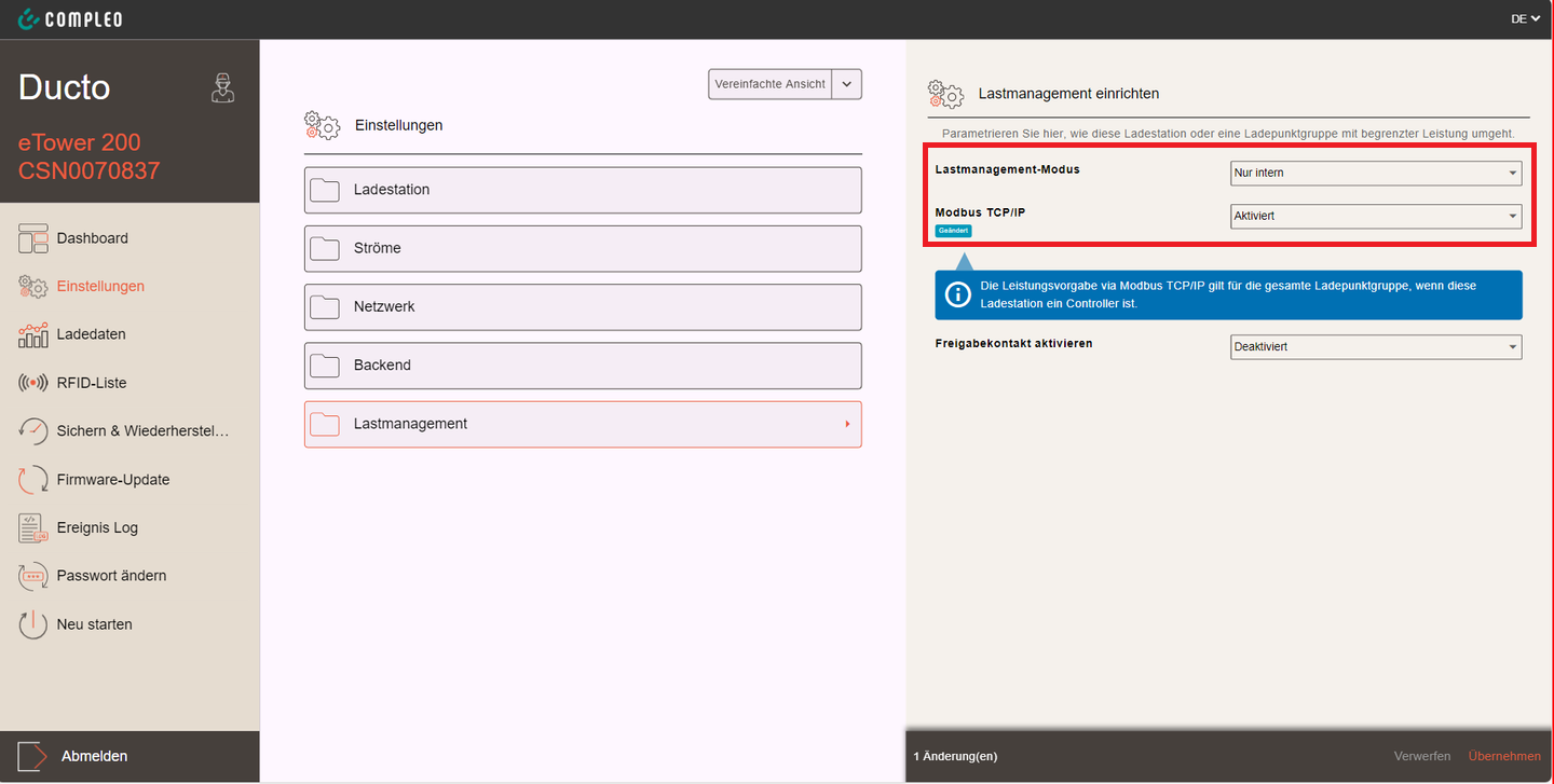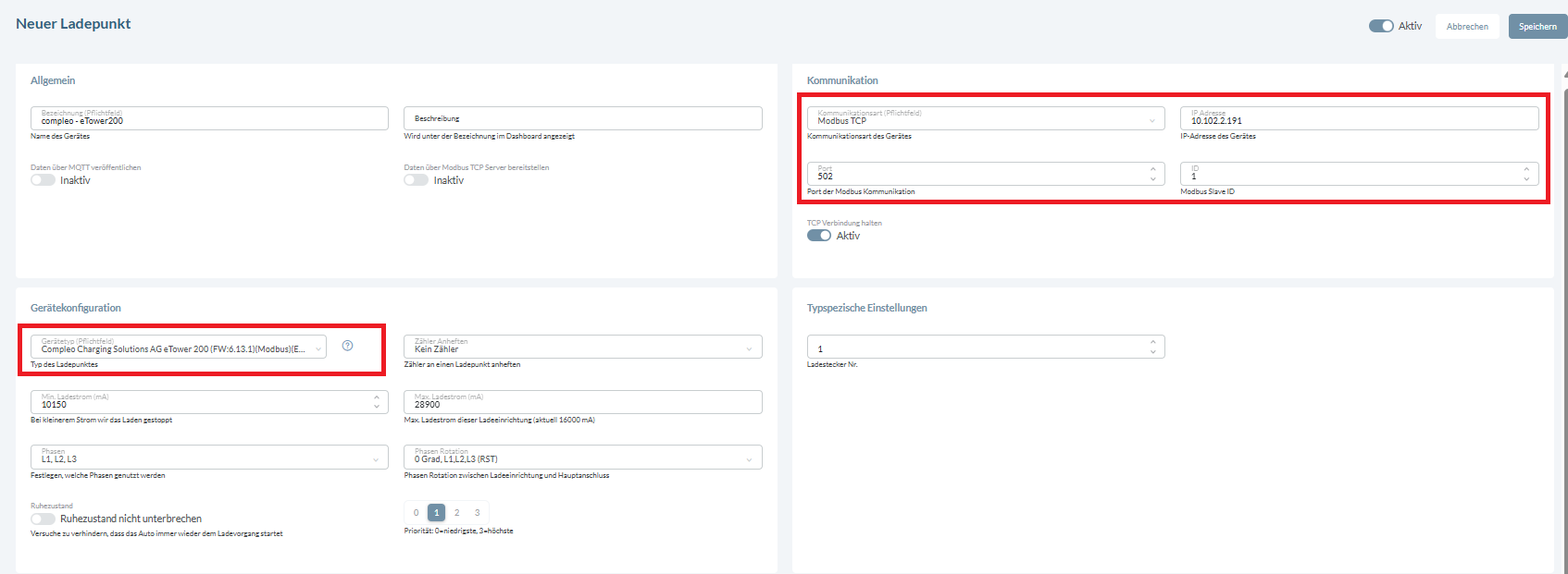 - Lobas: Wähle Compleo - eTower200 bei Gerätetyp