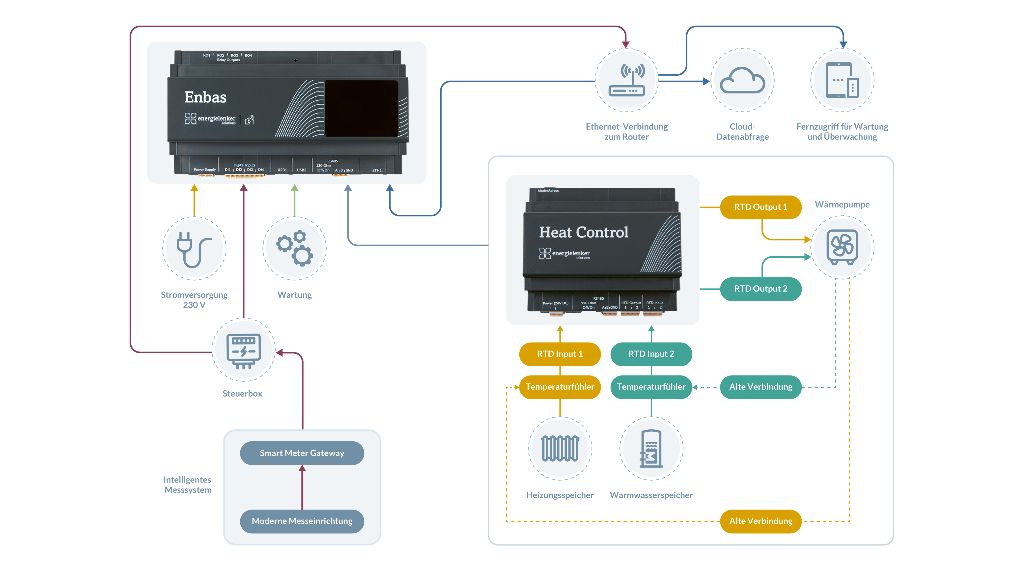Wenn Du mit Enbas Deine Wärmepumpen steuern möchtest, kannst Du das System ganz einfach um Heat Control erweitern.