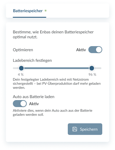 Mit der Optimierung deines Batteriespeichers kannst du Ladevorgänge gezielt steuern – insbesondere in Kombination mit PV-Erträgen und Strompreisen.